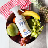 Mycí prostředek na ovoce a zeleninu obsahuje 94 % přírodních ingrediencí, je praktický, protože jej lze nastříkat přímo na ovoce a zeleninu nebo použít jako namáčecí roztok.