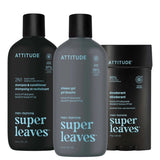 Pozvedněte svou každodenní rutinu s naším kompletním balíčkem péče o pánskou pokožku ATTITUDE Eukalyptus a Šalvěj. Tento balíček obsahuje pánský deodorant, pánský sprchový gel a pánský šampon a kondicionér 2v1, vše s více než 95 % složek přírodního původu. Naše veganské složení s certifikátem EWG Verified poskytuje vysoce účinné výsledky, zatímco povzbuzující mužná vůně osvěží vaše smysly a připraví vás na nadcházející den.