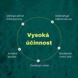 Obsahuje rostlinný výtažek saponin, který má přirozené pěnivé a čisticí vlastnosti. Je vyrobený z přírodních zdrojů a ekologický. Tento univerzální veganský čistič, který obsahuje 94 % přírodních složek, je nezbytností pro zářivě čistý domov.